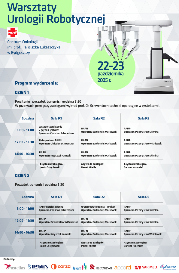 Warsztaty Urologii Robotycznej – 22–23 października 2025, Bydgoszcz (Centrum Onkologii im. prof. F. Łukaszczyka)